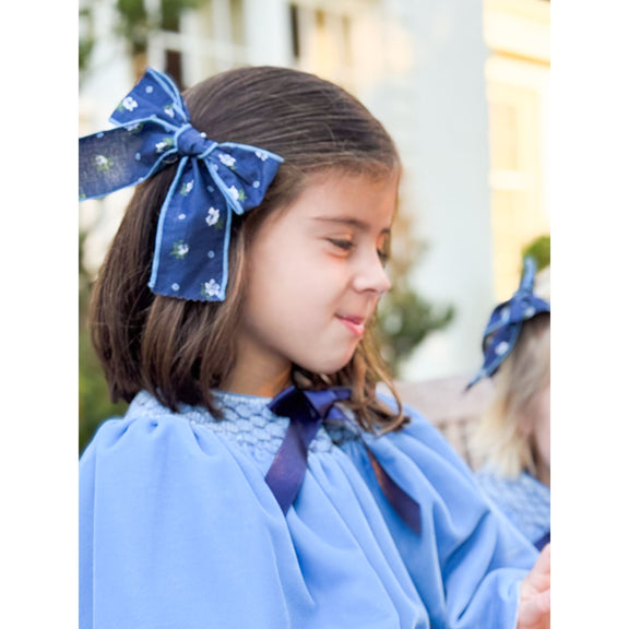 The perfect finishing touch to any AK look. Hand-tied and a darling blue edging in a beautiful blue Liberty of London fabric and set on an alligator clip for easy wear, this bow is both classic and practical.