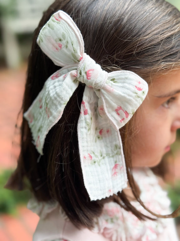 Bow- Pink/Sage Flower