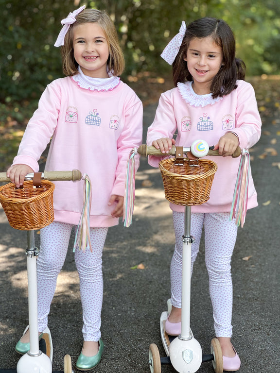 A darling take on our weekender. Who doesn't love a oversizes sweatshirt? Hand embroidered for that Alice Kathleen stamp, with our custom AK flower leggings! So many ways to wear both pieces, mix and match with any AK ruffle blouse, especially the AK puff blouse - staple of all staples!