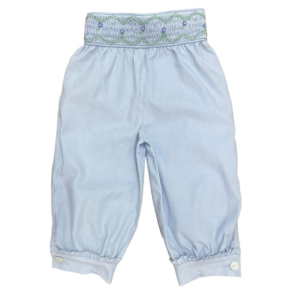 A charming staple for her Fall/Winter AK wardrobe, the Hand-Smocked Posy Bloomer pant is made from lightweight 100% Pima cotton corduroy in our signature powder blue. Thoughtfully hand-smocked with delicate floral detailing, these pants are perfect for around at home or dressing up for special occasions.