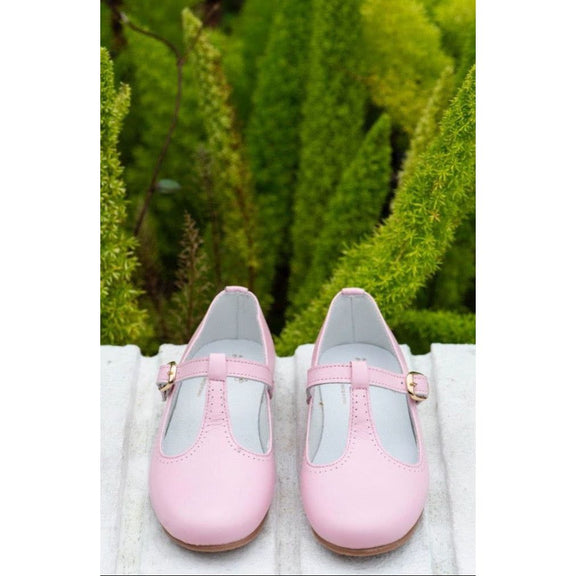 Enhance your daughter's wardrobe with vibrant color by adding Alice Kathleen's pink, t-strap shoes with a darling gold buckle. These timeless shoes are made from luxurious 100% Nappa leather, in hand selected colors. Practical and comfortable, she can wear these everyday for that SO Alice Kathleen look!